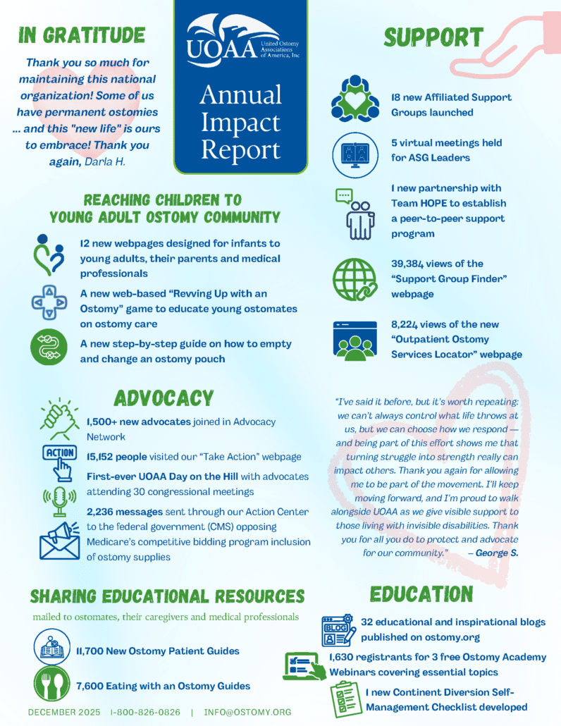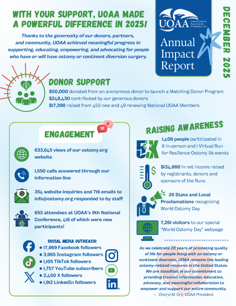 United Ostomy Associations of America, Inc. (UOAA) is a 501(c)(3) charitable organization and all donations are tax-deductible.