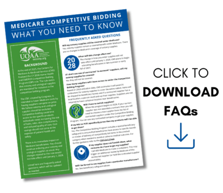Although, CMS states in this Competitive Bidding Fact Sheet that the “Competitive Bidding Program includes a special beneficiary safeguard to ensure that beneficiaries have access to specific brands or modes of delivery of competitively bid items in the product category when needed to avoid an adverse medical outcome.”, UOAA remains concerned. We hope to work with CMS and share recommendations for stronger enhanced safeguards that should be implemented if this moves forward.